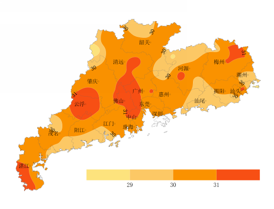 预计,受副热带高压控制,未来三天我省大部维持高温炎热,有大范围35~37℃高温,个别地区38℃。18日,我省大部晴间多云为主,午后有分散的雷阵雨,局部大雨或暴雨。19日,韶关、清远、肇庆、粤西的部分地区多云间晴,有雷阵雨局部暴雨,其余地区晴间多云为主,有分散的雷阵雨局部大雨。20日,粤西、珠三角西部多云间晴有分散雷阵雨,其余地区晴间多云,午后局地有雷阵雨。