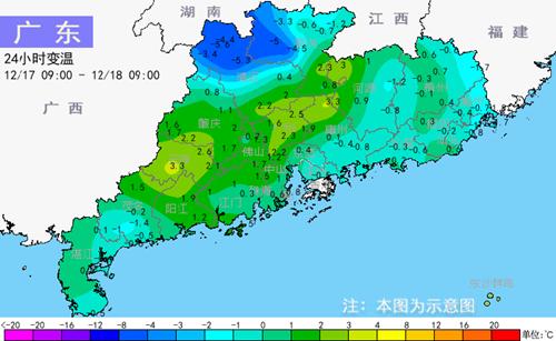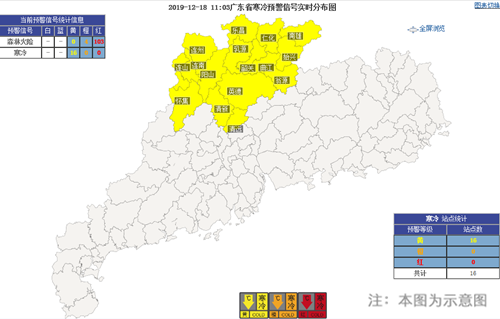 18日夜间到19日,北部阴天有小雨局部中雨,中部阴天有小雨,南部多云间阴天有分散小雨。最低气温:韶关和清远、河源北部5~7℃(高海拔山区4℃左右),南部沿海市县14~17℃,其余市县9~14℃。