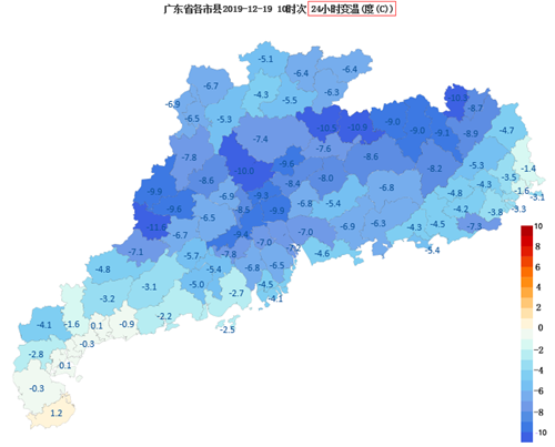 19日,粤北市县阴天有小雨局部中雨,中南部市县阴天有分散小雨,白天最高气温:韶关和清远、河源北部8~11℃,粤北其余市县12~15℃,南部沿海市县18~21℃,其余市县15~18℃。