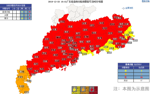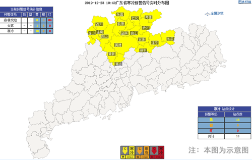 22日,我省多云为主,韶关和清远的北部市县出现了小雨,最高气温:清远、韶关、肇庆北部、河源北部12~17℃,南部沿海大部分市县24~26℃,其余介于20~22℃。23日早晨低气温:粤北市县10~13℃,南部市县16~19℃,其余市县13~16℃。其中韶关和清远市县气温日较差仅1~3℃。目前我省除韶关和清远的北部市县外森林火险预警信号继续生效中。截止23日上午11时北部共有18个市县寒冷黄色预警信号继续生效。
