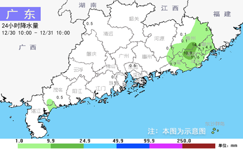 30日白天到31日早晨,粤东、梅州南部和粤西的部分市县出现小到中雨局部大雨,其余市县多云间阴天局部有小雨。31日早晨全省最低气温具体分布:粤北大部和肇庆北部市县12~17℃,其余市县17~21℃。目前,我省中西部高等级森林火险预警信号继续生效。