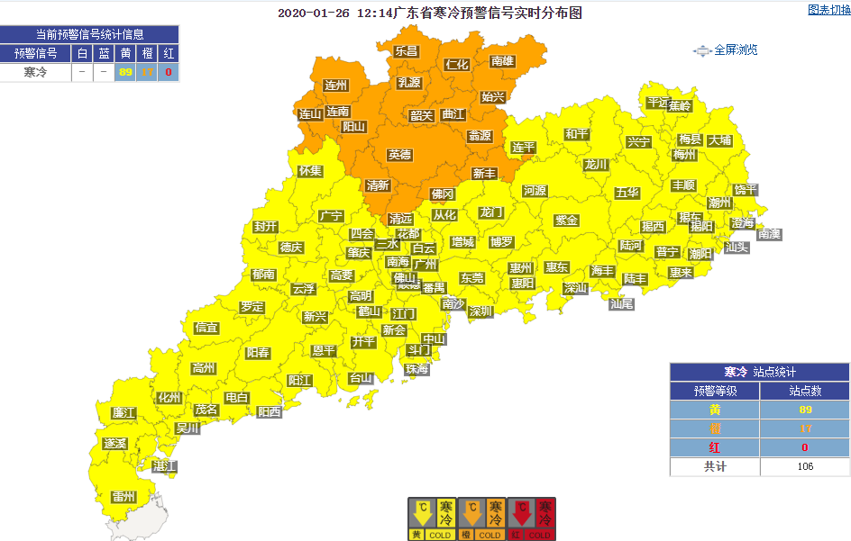 26日(初二)白天,珠江三角洲、河源、梅州、韶关、清远南部有中雨局部大雨,其余市县小雨局部中雨,天气湿冷。